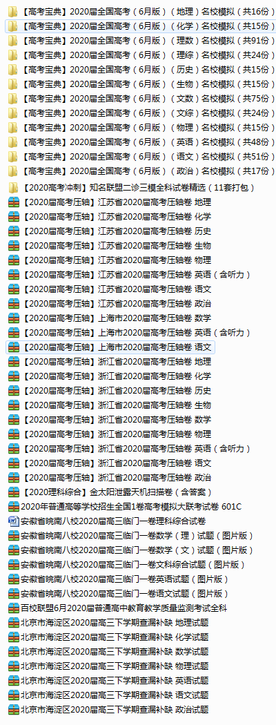【高考宝典】2020届全国高考(6月)名校模拟卷(全科精选,含部分答案,打包资源)